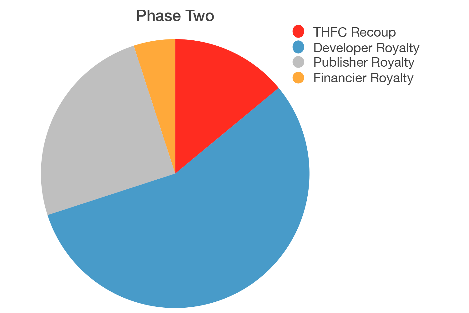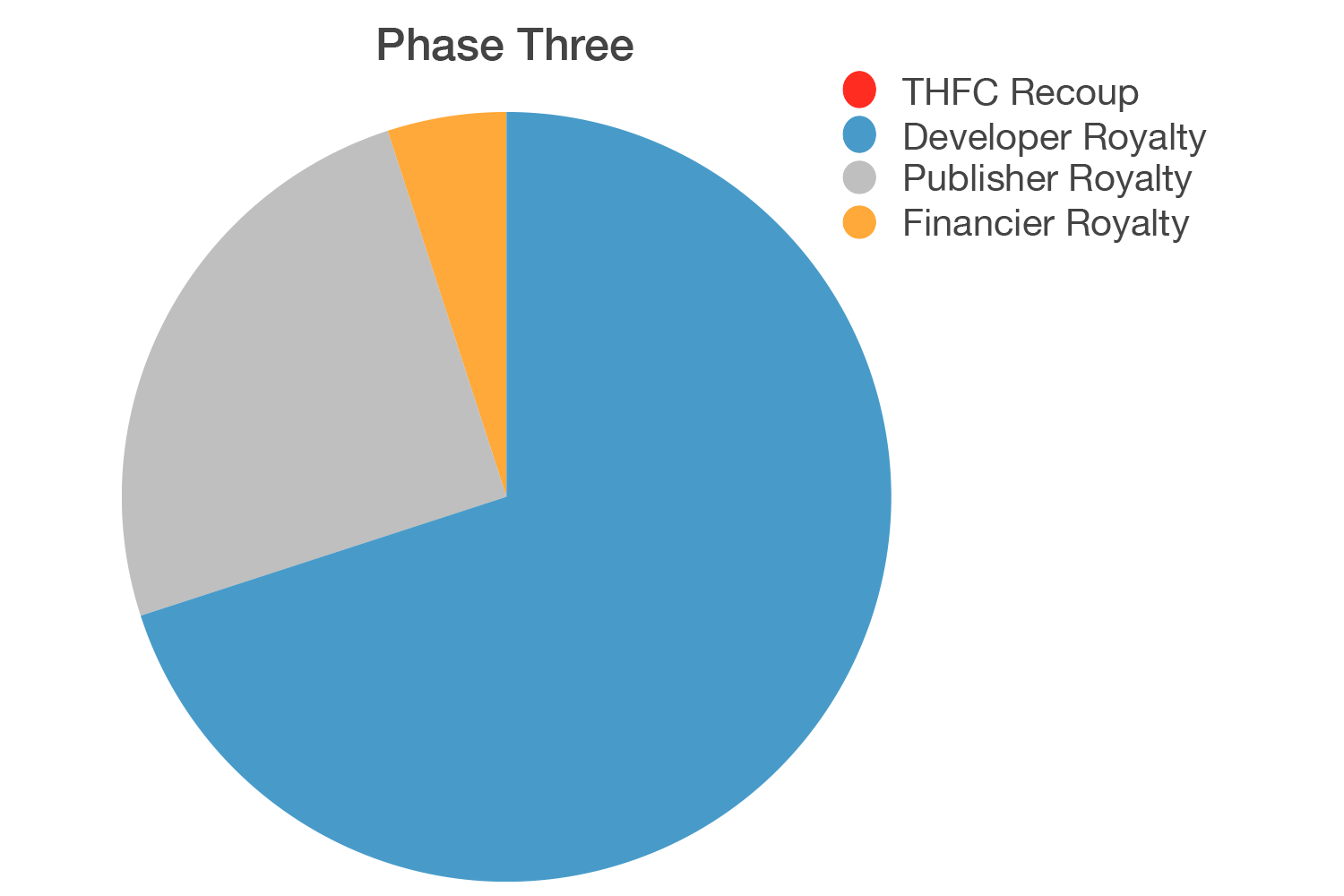 The developer receives funding from the THFC. When the game launches, the developer repays this funding from its share of the game revenue. 100% of the developer’s share goes to the THFC until the original funding is paid off.